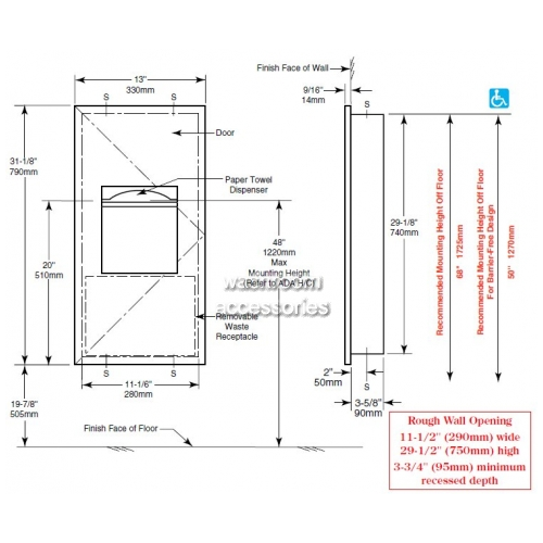 | B36903 | Recessed | 330mm [W] x 790mm [H] x 90mm [D] | 3.00 (kgs) | Satin Stainless Steel |