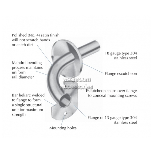 Bradley 832 Corner Toilet Grab Rail 45 Degree Left Hand
