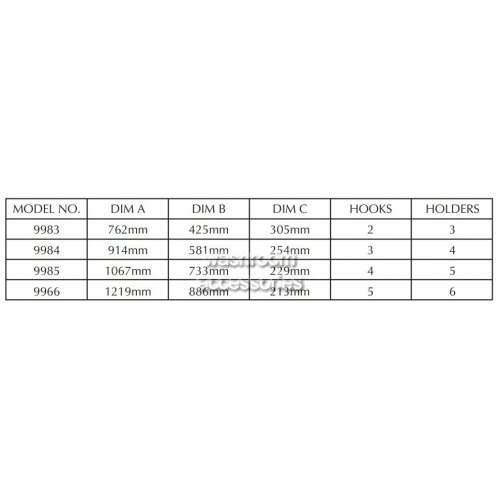 | 9984 | 3 Hooks 4 Holders | 95W x 25H x 26D (cm) | 4.00 (kgs) | Satin Stainless Steel |