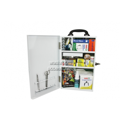 Did you know? Features: Case dimensions: Kit Contents: Cuts & Abrasions: -Adhesive Premium Fabric Strips x 50 -Combine Dressing 10cm x 20cm x 1 -Gauze Pieces (Sterile) 7.5cm x 7.5cm Pk5 x 3 -Non-Adherent Dressing 5cm x 5cm x 6 -Non-Adherent Dressing 7.5cm x 10cm x 3 -Non-Adherent Dressing 10cm x 10cm x 1 -Wound Dressing No.14 (Medium) x 1 -Wound Dressing No.15 (Large) x 1 -Wound Wipes x 10 Sprains, Fractures & Bruising: -Bandage - Conforming 5cm x 1.8m x 3 -Bandage - Conforming 7.5cm x 1.8m x 3 -Bandage - Crepe Medium Support 10cm x 2m x 1 -Instant Cold Pack x 1 -Triangular Bandage Disposable 110cm x 155cm x 2 Burns, Bites & Stings: -Antiseptic Spray 50ml x 1 -Hydrogel Sachet 3.5g x 5 Eye Injury: -Eye Pad x 4 -Sodium Chloride (Saline) Pods 20ml x 8 CPR, Rescue & Survival: -Blanket - Thermal x 1 -Resuscitation-Safe Face Shield - Disposable x 1 Essentials: -Adhesive Non-Woven Tape 2.5cm x 5m x 1 -Biohazard Bag x 1 -First Aid Booklet x 1 -Forceps - Disposable x 1 -Nitrile Gloves Pack (Pairs) x 5 -Pen x 1 -Plastic Bag Zip Lock (Small) x 2 -Plastic Bag Zip Lock (Medium) x 2 -Plastic Bag Zip Lock (Large) x 2 -Register Of Injuries Book x 1 -Safety Pins - Assorted x 12 -Scissors x 1 -Splinter Probe - Disposable x 10