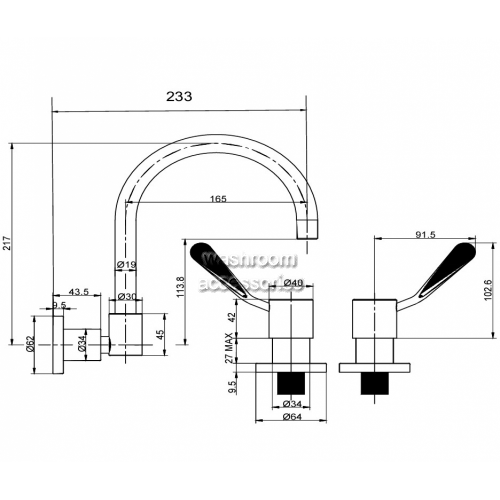GentecGENTEC CLEANLINE LEVER CL10035 WALL MOUNTED CONCEALED SINK SET233mm Gooseneck Swivel Spout and 100mm Lever HandlesAssociated CategoriesProduct Information